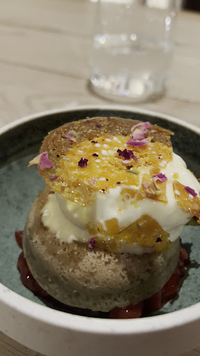Dessert of rose syrup dipped baba came with more than that, which I’m not sure is a good thing - it didn’t come together as one, so I think less is more here. Sugar crisp on top was delicate like a crème brulee crust.