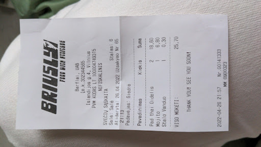 Read moreI usually don’t leave reviews, especially negative ones, however I wouldn’t want another customer to be treated like we were last night by the manager Goda. I went to Bruisly with my partner and a friend at around 9pm. My friend has a shellfish allergy so we ordered a Pad Thai for her without the shrimp. We waited for our food for around 30min but they only brought out mine and my partner’s food and advised that my friend’s food will be out in a few min. All good. Well we waited another 20min for my friend’s food until they brought it out with shrimp when we clearly told them she can’t eat it because of allergies. Well, they had to remake it again and my and my partners food got completely cold in the meantime. I understand mistakes happen, but the worst part was the manager Goda who came to talk to us. She was extremely disrespectful, kept talking down on us, even other customers were looking at our table with a disbelief of how she was speaking to us as customers. She took my friend’s meal off the bill since we waited for it for over an hour but couldn’t do anything about my or my partners food even though we ate it completely cold. Goda had a ridiculous attitude which wasn’t ok. I personally worked at quite a few restaurants myself and this kind of behavior wouldn’t be acceptable anywhere. We had limited time in Vilnius and I just hate that we had a waste so much time...