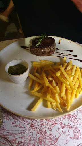 The waiter refused to make a well-done rib eye or steak for my guest, saying, "We don't spoil good meat." So,ok,I may understand the chef,but doubt - this service.. I ordered chicken with potatoes and girolle mushrooms in double cream for my guest and a grilled goat cheese salad for myself.