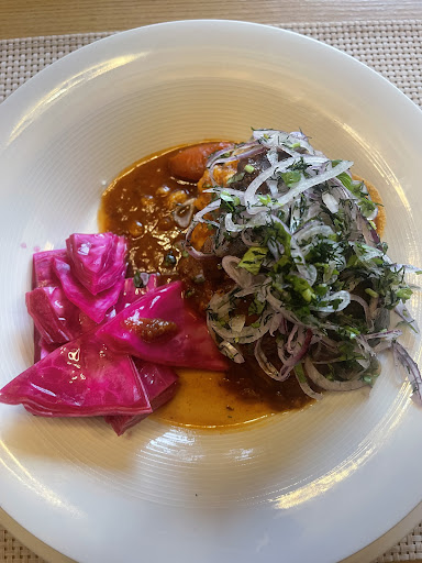 The service however is also from 20th century. Only one staff member was working there at the time of our visit and we felt threatened. Our menu picks were mocked, the tone was insulting throughout the whole dinner, the dishes came out far inbetween from each other (My friend's main came probably a good half an hour earlier than mine) and no commentary was made on that. Turned out this staffer was "the manager" and while he told us it is impossible splitting up the bill for us he had no problem literally demanding a 10eur tip, which he had to type in manually into the card...