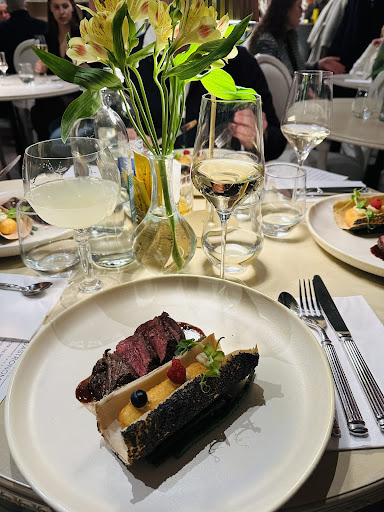 Read moreLocation is great, restaurant brand new with lots of potential and would be amazing place to return, if not several "buts": very bright lights for the evening dining -staff was very inexperienced which was a shame (at least waiter was honest,that he started just 2weeks ago)- no knowledge at all about the wines on the list, took ages to remove empty starter plates, 1h later one of us was still waiting for a drink and only then we were told it was sold out. -was very strange to hear from the waiter: -don't get our steak-you can do it very similarly at home...it's nothing special at our place -two of our starters were forgotten, one came after mains (with apologies and promise not to charge for it). -place was half empty but dirty dishes were left for the rest of the evening on the nearby tables -and surprise surprise - bill came with 2 forgotten starters included (after mentioning this mistake we were still charged for the starter which came late). For the price one would definitely expect more. Dishes were nice (tartars are amazing, same as deserts), mains were not very hot, and yes, steak was not impressive at all. Portions on the larger size. Sorry not...