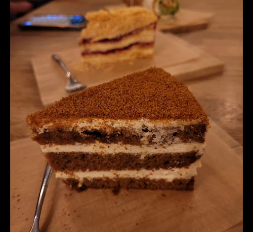 One of the worst coffees I've tried so far. 3 years ago, it was a cute coffee spot that cared for the customers and had well-balanced flat whites/any coffee beverages. Not anymore. Chasing profit might be of the reasons. The roast is commercial, it is seen. The V60 was 'empty', lacked flavours and taste. And if I remember correctly, it was Kenyan, which is usually quite rich. The flat white & cappuccino were too bitter. Might suit those who like dark roast (you know, smth that resembles Lavazza). The honey cake was not good, the honey seemed artificial and the layers too thin. The napoleon was okay'ish. Salmon wrap was the only thing that deserves the title 'being more than the average'. It took a while to get our coffees, around 15 minutes. And even though it was morning, it was not super crowded. Overall, a bit disappointing, given the fact I was looking forward to a pleasant morning experience. Not what it used to be, but...