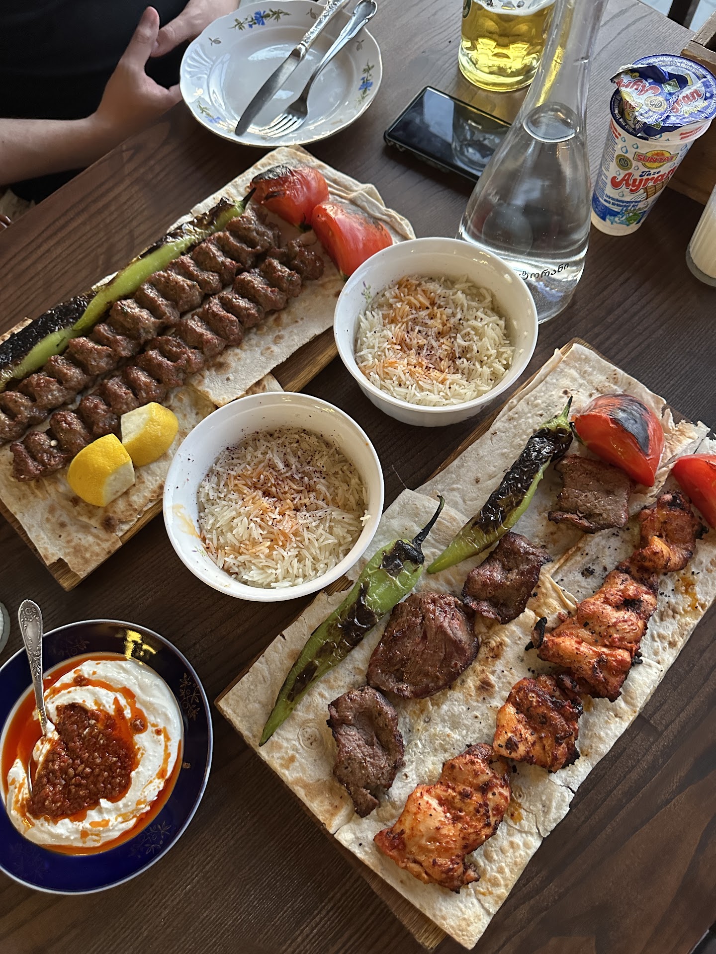 EDIT: some changes on the menu, with new dishes, but also different price structure. If you want lulya kebab with rice it will cost you 2,5euros extra. They also reduced the quantity of veggies included with your meal. So overall, price that were already high went even higher. Count 40-50 euros for 2 people including a beer in bottle. Good quality product, and good meal. It’s fresh and tasty, but price...