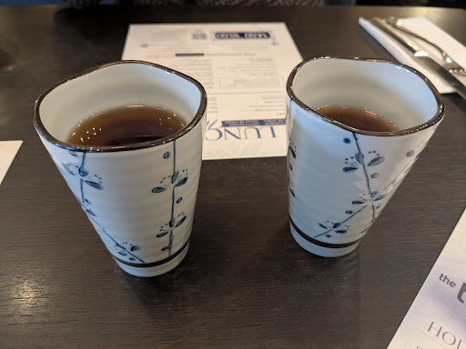 Complimentary green tea and prawn crackers to start were a nice welcome to the meal. Not exactly mind-blowing fare, but free is free.
