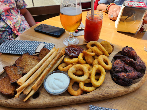 Read moreThis place has gone through a couple of name changes but remains basically the same layout. The location is amazing - right by the church and lots of people passing by. There is also a bit of vehicle traffic in the area, including a sightseeing tour bus start point. Our small group stopped by in the afternoon for a drink out on the patio and also got their beer snack plate. It was a good assortment of finger foods, and the wings were very tasty. I didn't quite get the roulette wheel when you first walk in the place - the only "gambling" item there - definitely not a casino hahaha. Their interac was down and was cash only. I assume this will be fixed. Ordering was done on your phone using a QR reading on napkin holder - different, but it worked. Last quirky point - bathroom was very small (like in an airplane), and the motion sensor timer left me standing in the dark a few...