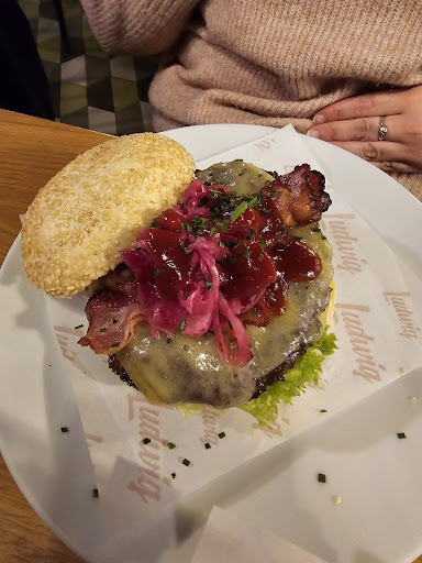 Read moreI would give our visit a 3.5 stars out of 5. We visited on a Thursday evening at 6pm and while there was no wait, it was loud and crowded. It took us a long time for a waiter to take our order, but the waiter was very kind & friendly (and spoke English) and the service was wonderful the rest of our time there. I think that, like many other places we visited in Salzburg, we paid a lot of money for an OK experience. I got the vegetarian broccoli & cheese burger on a gluten-free bun. The bun was terribly tasteless and dry (which I don't think is unique to Ludwig, unfortunately--that seems to be the situation in most places) and I was disappointed that the burger had literally one thin slice of processed cheese, one leaf of lettuce, and one slice of tomato. It left a lot to be desired. On the other hand, my son gave his BLT burger rave reviews. The sweet potato fries were delicious and the lemonades were yummy, in generously-sized...