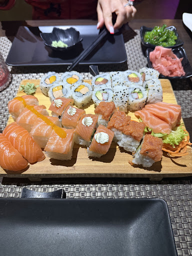 Der gröĂte Kritikpunkt war der Reis, der einfach zu pappig war. Es fĂŒhlte sich an, als wĂ€ren es Reste des Mittags Zug. (Da wir am Sushi Train saĂen) Der Reis ist jedoch ein entscheidender Bestandteil von Sushi, und wenn er nicht richtig zubereitet wird, beeintrĂ€chtigt dies den gesamten Genuss. Es war schwierig, den Reis zu kauen und zu schlucken, und das hat das gesamte Geschmackserlebnis negativ beeinflusst.