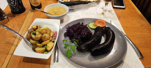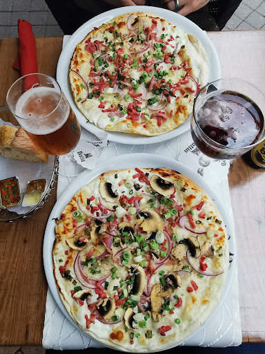 This was the first time I've ever had Flammekueche. It was delicious! Sort of like pizza, but with a much lighter, airy crust and 3 basic toppings. The restaurant had several options if you wanted to deviate from the traditional version. The apfelstrudel with ice cream was equally delicious and the coffee was strong.