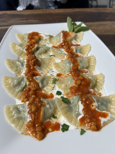 I had ashak, a type of Afghan dumpling filled with leek and served with tomato garlic oil sauce. I absolute loved it. It was delicious. Only thing; they should be more careful about the lentil sauce on top. Lentils can contain small stones or purely hard lentils. I found a tiny one in my plate. Other than that, they are quite busy so you may have to wait a little during sunny days. They have an amazing terrace where unfortunately I couldn’t find a place:-) The staff is very friendly. I wish I had the place in my stomach to try each and every option in the menu! Cause I mean, the dumplings were...