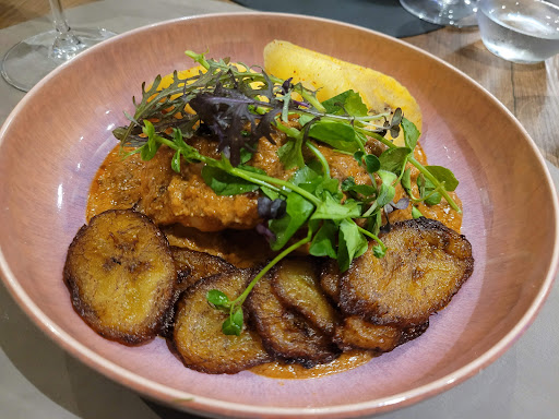Cuisine très bonne et originale (mention spéciale à la soupe de poisson et au taco au chocolat et poire avec sauce au vin rouge), même si j'aurais aimé que ça soit un chouïa plus prononcé sur les saveurs africaines au niveau de certains plats (le cabillaud à la banane plantain manquait un peu d'originalité dans les saveurs à mon goût, saveurs qui n'étaient pas assez prononcées), d'où la petite étoile en moins.