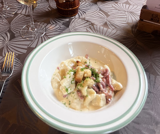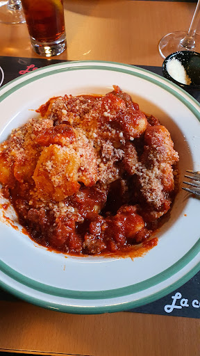 Am Ende gab es einen fahrlässigen Fehler, wo der heiße Kaffee über zwei Kleinkinder hinweg gereicht wurde, obwohl auf der anderen Seite genug Platz gewesen wäre. So etwas darf nicht sein: Heißes Essen und heiße Getränke dürfen niemals über Kleinkinder oder auch Hunde... gereicht werden. Man kann nicht wissen, wie sie reagieren. Der Kaffee kippte und das heiße Getränk wurde schmerzhaft in den Schoß der Bestellerin verschüttet. Glück im Unglück, dass es die Erwachsene getroffen hat und nicht die Kinder. Die Kellnerin hat sich mehrfach entschuldigt und freundlicherweise sofort etwas gebracht zum Kühlen. Fehler können passieren, darum geht es nicht. Die Frage ist, warum sie passieren. Meiner Meinung nach - ich mag mich sehr wohl irren - lag es am Stress und am Wunsch nach mehr Geschwindigkeit, dass der extra Schritt weg von den Kindern nicht gegangen wurde. Der Punkt ist - der Stress und diese miserable Laune des Servicepersonals überträgt sich auf die Gäste und kann eben auch zu Fehlern führen. Trotz des guten Essens sind wir heute nicht mit gutem Gefühl nach...