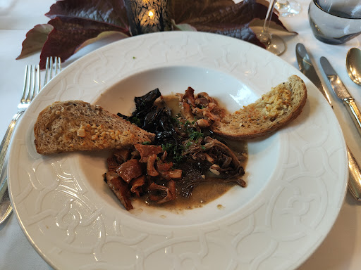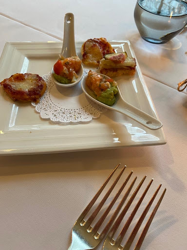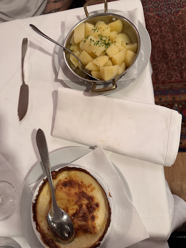 Read moreDas 1. Mal an einem Sonntagmiitag zu 2 Personen, und wirklich enttäuscht. Empfang sehr nett und sympatisch, Wein super , aber vom Essen so enttäuscht. Amuse bouche, kalte Pizzastückchen, kleine Ziegenkäsetoasts, naja. Im Löffel Saumon/Goucamole war gut. Suppe lauwarm, Filet de cailles vertrocknet, da der Teller im Ofen erwärmt oder warmgehalten wurde, und alles am Teller angebacken war. Filet de lapin war OK. Meine Bekannte Vorspeise und Hauptspeise nur zur Hälfte gegessen , da es ihr gar nicht schmeckte. Fragte aber niemand nach, ob ein Problem wäre . Käseteller war sowas von lieblos serviert. Leider kein Foto… wir hatten beide 2 verschiedene Käsesorten auf dem Teller. Ich denke, da das Restaurant voll besetzt war, mit relativ älteren Stammkunden, und es ein Menu und nicht à la carte war, die Organisation schwierig ist. 2 x Menu, 1 Flasche Wein, 1 Flasche Wasser und 1 Espresso zs 198 € und 2 x Bauchschmerzen im Preis...