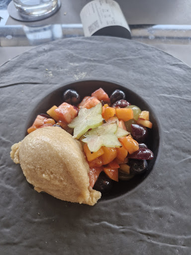 Read moreWe ordered a lunch menu from the RestoDays event. We had a carrot soup with croutons, and some fries with a flavourful seemingly homemade ketchup! The food was delicious! Only one thing I disliked: the mille-feuille wasn't that good as a dessert. I appreciated the creativity, but the dough was too oily and indeed, it wasn't the mille-feuille I had in my mind. In my opinion, it would be better to have a tiramisu on the menu, it is absolutely more Mediterranean than mille-feuille! Having been there with a friend, the dessert I tasted from my friend was mouth-weathering. Definitely, you should opt for the pastry with coconut sorbet as a dessert if you come here, it was so refreshing! The aubergine main dish and the sweet and salty feta with honey were astonishingly appetizing!! Amazing service and atmosphere! I adored the light volume of the music, having Taylor Swift on the background, which was delightful! Absolutely a cozy culinary...