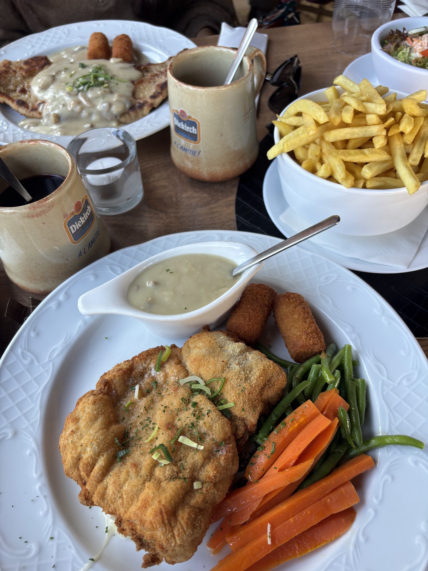 Read moreWhen I entered this restaurant I admired the view. The restaurant and bathroom are very clean and have a nice smell. I was so happy to be in Luxembourg till now. But... Then we ordered our meal (beef and schnitzels with onions). The order did not come, a lot people came and went. We are asking to waiters. They are saying okey I will look. But who is going and not coming back. Finally I said, 'if the meal will be late, please let us know, we should go, cause we have a program. The last one also said okey, I will look immediately. Also she went and didn't come back. So I called her and asked what happened? She said 'the communication missing happened between kitchen and waiters, so they are preparing now...' so I said ' we don't deserve to get this information' we don't have long time in Vianden, we had a program in Luxembourg and plans. We had to skip because of this mistake. At least you can tell us.' we spent 2 hours here, eating is only almost 15-20 minutes. We skipped the ice-cream which already in the menu. When we are paying, she said, the thing She can do more, make free the drinks (2 beers). Also one menu came wrong, but we did not inform them, because we didn't want to wait one more hour. We ordered schnitzel onion, came schnitzel mushroom. Thank you to spend our time and make down our all motivation. It can be exceptional situation but they would solve it at least more...