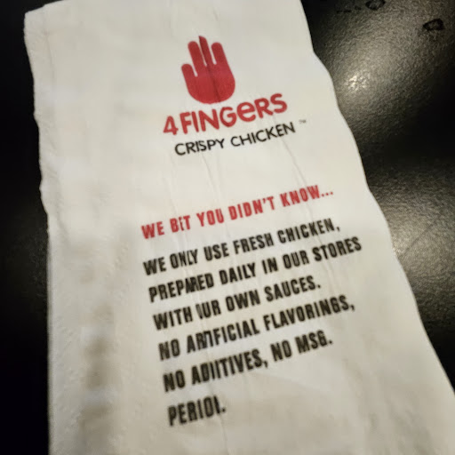 This was stale and wasn't kept warm with heater, perhaps ac too cold inside kitchen. Please QC this outlet as I have eaten fresh hot food from 4 Fingers at different smaller...