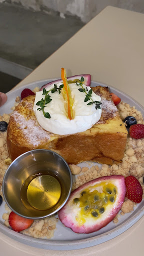 The taste of their creamy pasta was on point. It was super creamy but not rich. The chicken breast was grilled to a good, juicy taste. While we enjoyed this dish, we just hoped it would be great if they added some greens or broccoli! We also liked the French Toast with cookie crumbs; their food presentation was aesthetically pleasing. Strawberry matcha was okay, and their iced latte was fine for a hot Sunday afternoon.