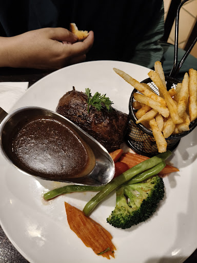 Read moreWe came here on a Saturday evening for dinner which means it was a full house & there was a long que waiting outside. The steak was tough & dry, the ribs were a bit on the muak side considering maybe the sauce of the ribs was on the sweeter side. The seafood chowder lacked flavour but the nachos were okay. The aglio olio was generous with seafood & was a bit spicy, which gave it a nice taste.