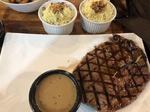 We had their steak and seafood aglio olio. The steak was juicy and well cooked. The black pepper sauce coupled with their mashed potato were good too. The aglio olio was balanced. Not salty, not too oily. Just nice. The prawns used in the aglio olio were okey. For the price, the portion is appropriate. Personally it is bigger than most places.