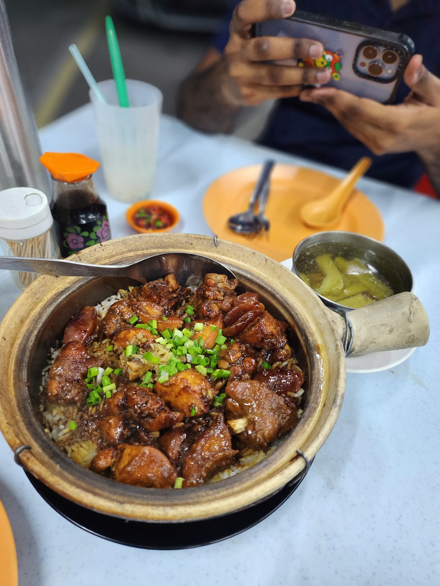 Worst place for claypot chicken rice due to the horrible service. Place was packed so we decided to still queue as we are not super hungry. After waiting in line for some time, it started to drizzle abit but we are just no.2 in line btw so we still waited. Lady boss didn't even bother to ask us if we are ok to wait or to leave knowing that they could no longer cope with the existing customer. So we thought there is hope,after knowing is going to rain, the lady boss decided to tell us no more soup and they only left claypot chicken rice and one vege option. She ask us to leave. She should have inform us from the very beginning and give us the heads up if they don't have much to offer and could not cope. This is a horrible attitude a F&B operator can offer to customer. Will never return to this place anymore and anyway the claypot chicken rice is not up to our standard anyway, we pick this place cause we don't a lot of option. Is not our style to rate a F&B operator so badly but this place...