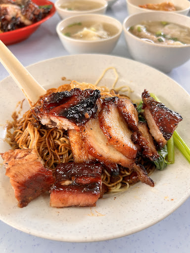 Read moreThere wasn't a long queue and we decided to try out. Small stall and not much space to queue inside. Took about 10 mins to be seated. Bigger group will have to queue longer as the dining tables are meant for 2 to 4pax, and limited. Our food came within 10 mins but orders were wrong, even though we repeated 3 times. Wonder why use a foreign staff to take orders. Food was above average. Noodles were not as springy as I would like it to be; melt in the mouth char siu (slightly sweetish) because of the fat; BBQ pork ribs were very tender (same sweetish marination as char siu); wantan was good but broth was salty for me; stewed chicken feets with mushrooms were good and dumplings were delicious. Curry noodles were sold out at 10 am on a Sunday. The queue under the sun was longer when we...