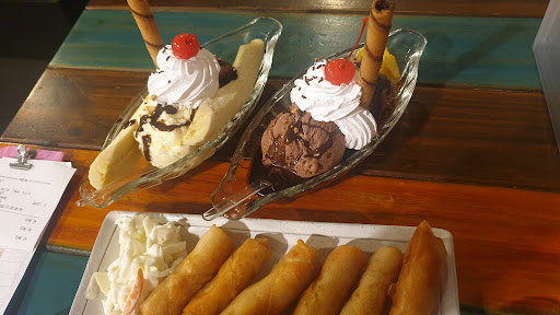 Honestly, I thought this is more like dessert house but apparently they also serve food. From asian fusion to western. And for desserts, you may choose from ice-cream combination with waffle, pancakes, fruits and all do looks tempting but me and my partner choose humbly as my main intention is just to have ice cream and this place come across as we google. We had pancakes with assorted fruits, celebrity brownie with your selected ice-cream flavor (1 scoop) and for drinks, we ordered coconut milkshakes and hot peach tea.