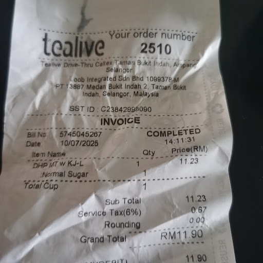 I really liked how fast and friendly the staff are here! ordering by drive through or even via grab is good in supporting our local tealive. The drinks are always delicious and in...