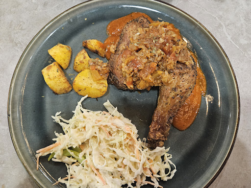 baked chicken whole leg - 7.5/10 (potato is good; chicken not like wow in the first bite, but interesting taste, texture...