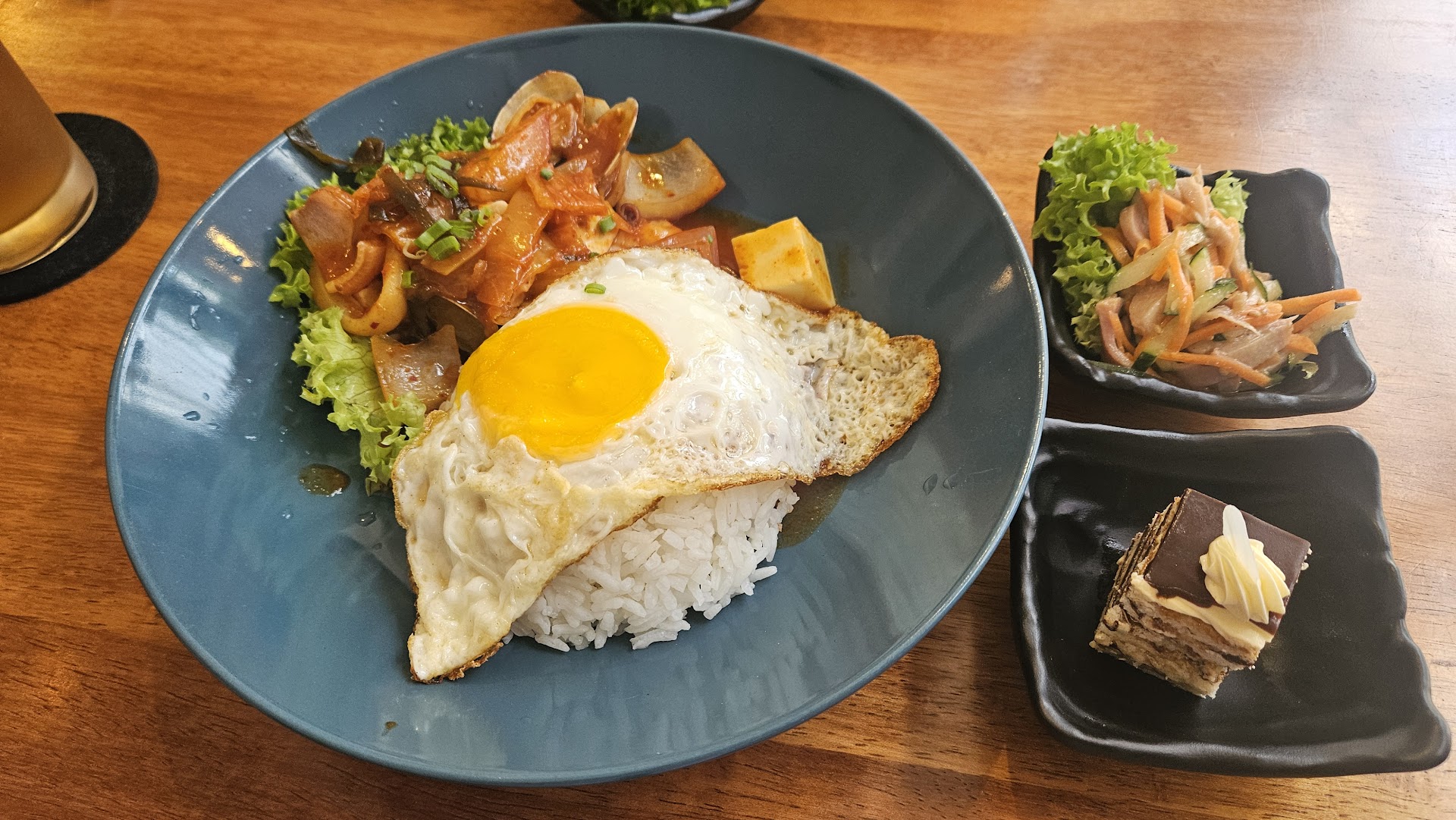 Ambience is clean , cozy and inviting. Feels like a family home cooked cafe. Air conditioned