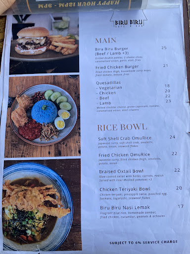 ย ย ย Read moreBiru-Biru Cafe & Bar offers a cozy atmosphere with a somewhat limited menu. While the menu lacks variety, the taste of the dishes is satisfactory. The pricing falls into the medium range, making it decent for the quality offered. The environment is inviting, with both indoor and outdoor seating, creating a comfortable ambiance. The limited seating, however, might pose a challenge during peak hours.