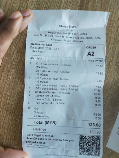 My main issue was the quality of the food. We ordered mutton varuval, chicken varuval and chicken curry. What we got was mutton grevy, chicken grevy and chicken( not sure what was that) Furthermore the service was incredibly slow. We had to wait for about an hour. The taste was not to the expectation. Didn't want to make any issue about difference in the order because we were frankly starving. As I went to pay my bill I asked is your varuval dry, she replied yes, I asked her why was your varuval not dry but grevy, she said she will tell the cook about it. What is the point now. She took over order and served it to us didn't notice the difference. Overall: Our dining experience was extremely disappointing. The poor quality of the food, combined with the subpar service and made for a thoroughly unenjoyable evening. I would not recommend this restaurant to others, and I strongly suggest potential diners explore other options in the area. Rating: [1...