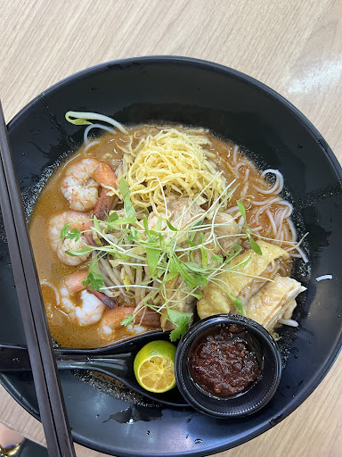 I came to visit this place to try it out because I read about it on social media. Visited on a weekday lunchtime and it wasn't crowded at all and there weren't other customers. I ordered a small bowl of laksa and sat down. The female staff didn't take very long to prepare and served it to me at my table. A small for a price of 9RM I thought was rather reasonable looking at the amount of ingredients in the bowl. Quite surprised its a hawker setting but the dish was so well plated. Finished the laksa and didn't feel satisfying to be honest. It was a decent bowl but there is nothing to rave about it. Very average bowl. I had to order some satay to complete the meal. Satay was not too bad either and I thought the combination was not bad and felt more contented. Reasonable price for a normal bowl of laksa with relatively big portion but its just overall very average. Worth a try, it was my first bowl of...