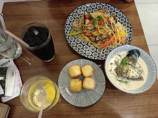 Went there for lunch today about 1.30pm, table almost full. Ordered buttermilk chicken with rice, cheese cake, seafood aglio olio, hot coffee & iced lemon tea. If youโre in a rush, I suggest ordering menu with rice. My seafood aglio olio took some time since i only got mine after my bro finished eating his rice ๐ Hence, 4 stars. Luckily Iโm not in a rush so I ate the cheese cake first while waiting. I saw other tables that got their food early, mostly ordered menu with rice. Overall, very satisfied with the portion and taste! Loved the cheese cake, itโs very fluffy and salty on the outside (coz itโs grated cheese everywhere ๐คญ), not sweet at all. Iced lemon tea is also great, but my bro said the hot coffee is quite sweet. Weโll definitely come back to try the...