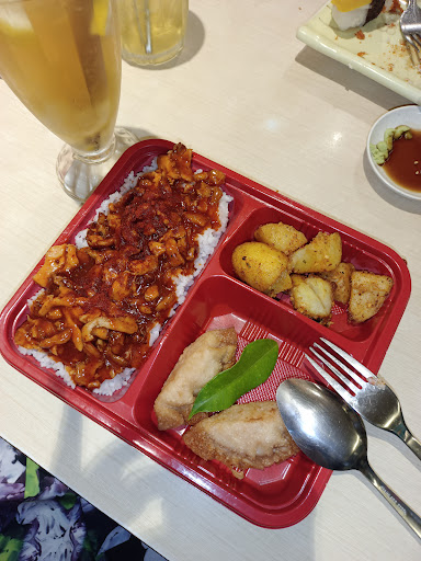 This was my first time dining at this outlet. I had Korean Bento and a cold honey lemon drink. My aunt had spaghetti chicken chop and a barley drink. We also ordered sushi and a half portion of pepperoni pizza.