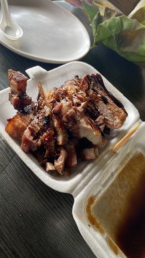 ย ย ย Read moreBrought my friends there, and while the adult found nothing special with the food the kid finished the rice (wrapped in leaf) and the bbq pork. Personally I like it, even though it's no longer a wild boar. I grew up with a dad who loves hunting, I know how the skin of wild boar looks like and their bloody smell. The seller did confirm it's all normal pork, not wild boar. But the smell of bbq, balanced fat and meat portion, kicap, and the chill atmosphere can be such a great place to hang out if it weren't placed so far from city. Foreigners need to bring local friend or translator. You order by deciding how many kg or half of kg, or any particular parts you like, you gotta communicate it clearly to the seller. Either seller are ok, I chose the first guy closest to road because I'm lazy to walk. Then you ask friends to secure a table for y'all to sit. Apart from pork, their fruits are quite nice. Pineapple is RM5 for 1kg, sweet and juicy. Their toilet though, like common Malaysian's toilet, need many improvements. Please be careful when going in or out of the toilet especially when you are wearing slippers, you will slipped and fall from the small cliff.