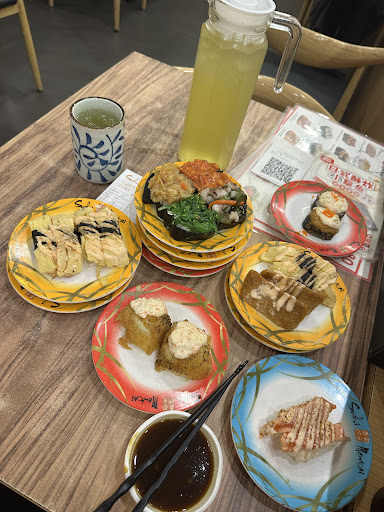 Read moreThe atmosphere was good but they play english song even though it is a japanese restaurant. The staff are polite and the service was good and fast. The staff greeted me in japanese even though i am chinese not japanese but i am okay. The food on the conveyor belt was good to eat but i ate corn sushi and it was sour so my stomach hurts a bit. The chicken and egg don was the best thing on the menu but it came with miso soup which should be renamed miso poop because it was so watery and not good. The salmon head was not cooked well and the eyes blinked at me when i look at it. They are very generous with ice for the genmaicha. Takoyaki anf tofu was good to eat. They are very very very generous with rice, i think i will poop out a whole rice paddy tonight, enough to feed my ancestors and the whole of china and malaysia combined. Terriyaki chicken was fine, sexy even but if you want real chicken go to cocksmore across the street. Overall good place and i would go back again 👍 way better than...