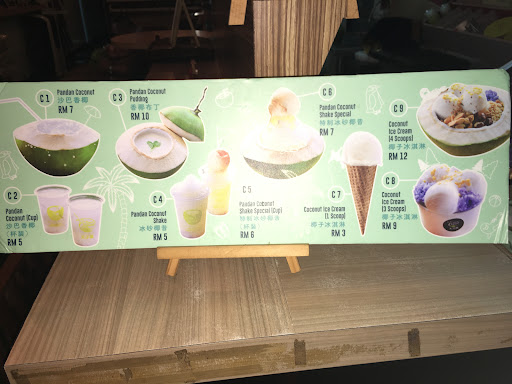 WHY YOU SHOULD GO Quality: a light and tasty coconut ice cream and pandan coconut "shake", which could have been colder, but had plenty of bits of fresh coconut strips in it Value: reasonably priced at 8 RM for the ice cream and the shake Vibe and Service: chilled spot, indoor seating with air con and sofas, great tropical / coconut theme throughout. Service was also quick and pleasant.