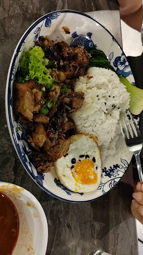 The restaurant setup is simple furnishing with almost no decor. A QR code menu & ordering system access from your mobile is available & might appeal to youngsters. However, manual ordering is also available which is helpful to seniors. Some dishes were sold out!! Crowded during lunch hour. We selected the Japanese curry prawn rice & fried dark sauce siuyuk rice. The Jap curry rice was good but the fried dark sauce siuyuk rice was so so. The heavy lunch crowd had compromised the service as you've to wait patiently. Payment also had a Q. The prices are on the high side considering it being "fast food" setting.