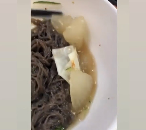 I and my friend ordered their mul- naengmyeon (冷面) but got served two bowls of noodles with huge ice cubes. We ordered the noodles a few times before but it doesn’t look like what he served.