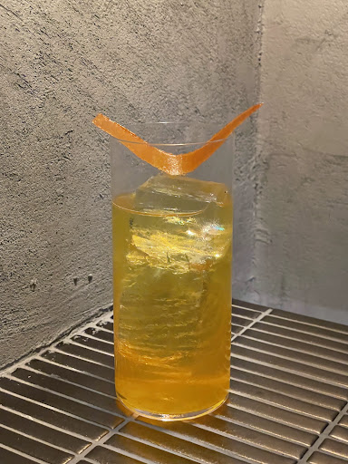 The next drink was the 24 Karrot Gold which looked the most appealing out of the drinks I ordered! So elegant and beautifully presented! Sitting across the bartender while they craft this drink from scratch was wonderful to witness! It had a beautiful red color with nice velvety cream cheese on top of it which gave a satisfying texture to the drink, and was topped with a touch of gold to emphasize the drink’s luxe nature! The taste of this drink was just as pleasant as its appearance. A warm flavor with hints of sweetness coming out after each sip made me keep going in for more. The aromatic spice from the Cocchi Rosa further enhanced the flavor and balanced out the ginger cordial extremely well. With the taste of the fresh carrot they also used which provided a little bit of earthiness to the drink, going brilliantly well with a high quality Gin and I feel like it had such complex depth to its flavor and was also easy to drink which made me savor the flavor more.