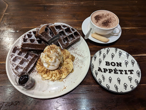Thought this place is worth a shot after checking the reviews. First impression upon entering the premise was not so good as no one was there to greet me nor there was any instructions on ordering. I randomly walked towards the counter to order. Yet no greetings. So on services it's a bit lacking. That asides, waffle is pretty good. I like it that it's crispy and most importantly it wasn't too sweet. It blended very well with the gelato. I had Dark Choc Whiskey gelato. The dark choc was quite intense and I could definitely taste the alcohol there. Unless you're a hardcore dark choc fans, try some other flavour. Also, the serving is well enough for 2 pax. I was there alone so a bad...