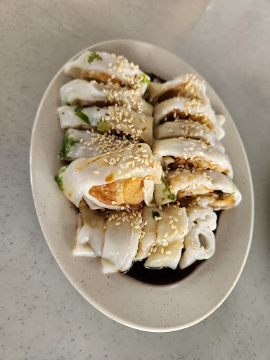 Read moreDelicious food! Never had anything like it before. It’s rice flour mixed with water and I believe tapioca, then poured into a flat sheet pan and steamed. Fillings are added and then the sheet is folded, creating this steamed rice roll.