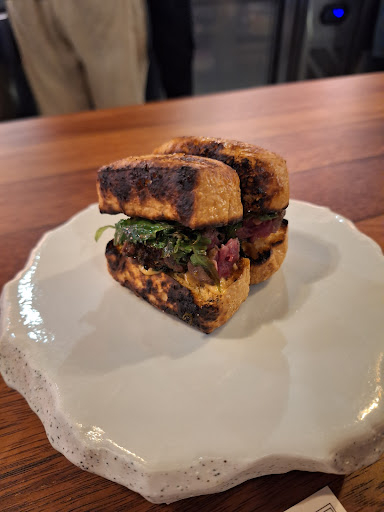 The snacks were a tofu burger and a bao - the bao was very dry, the worst I've ever had. The tofu burger was burnt and very hard to get through. We saw the table next to us eat the contents alone and send the buns back.