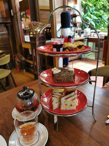 HIGH TEA SET - 3-tier tray containing scones, pastries, cakes, sandwiches and mini burgers + a pot of tea. Beautifully presented for photo opportunity and I could not resist ordering this set.