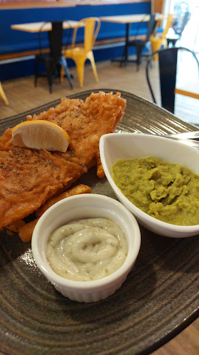 The fish and chips I ordered is soaked with oil as it is served, fries are tasteless which made me think even mcD soggy fries taste better. The fish smells. The staff waited behind the counter nearing to 3pm and one of them with mask halfway below the nose.