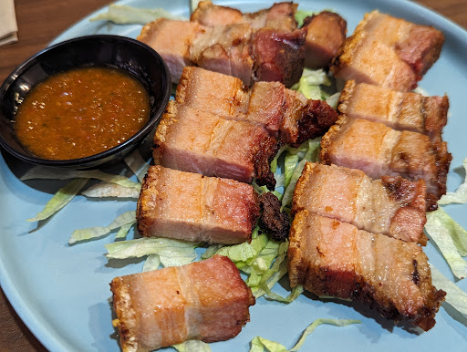 I had the crispy roast pork, vinegar and chili fresh dumplings, Sichuan won ton dumpling soup with prawn, and then tried the sambal fried rice with prawn after sending the soup back to the kitchen.