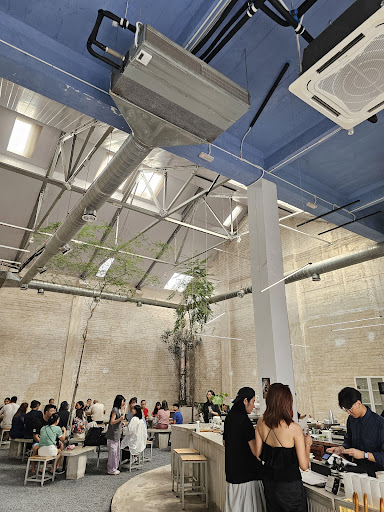 Space is big with lots of seating, high ceilings that begs for strong AC, loose gravel floor and selected areas with cemented slabs + epoxy for floors. Colour scheme mostly in the gray tones, gives off a very cold and mostly impersonal feel. Sat under one of the massive AC ducts and had condensation water drip down onto my plate - pick your spots wisely.