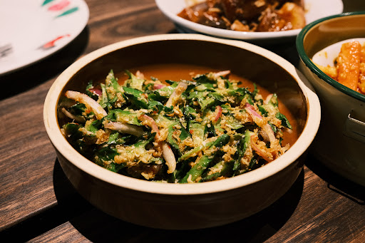 We ordered babi pong teh, cincaluk pork, kari kapitan, acar, winged bean salad, asam prawns and sweet potato leaves in sambal belacan. Everything was delicious with a taste that reminded us of a home-cooked meal (refined and not overly salty). The cincaluk pork was flavorful from the cincaluk that imparted a delicately briny, fermented shrimp flavor, and the asam prawns were sticky, sweet and sour. The winged bean salad was "chef's kiss"; enough said. Most of the dishes were served in tiffin carriers which truly reminded me of my own past where I had daily tiffin food delivered for dinner, and they served as a nice conversation starter as well.
