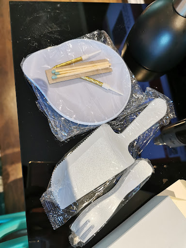 They so procide those nice design of plastic plate and fork.