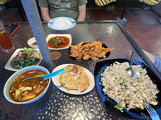 Located in front of Hard Rock beautifully decorated with lights so we gave it a try as it is walking distance from our hotel. Ordered set dinner, considerably pricey but we have no issue with it as it is a tourist spot. We had set A comes with small portions of tomyam soup, beef, fried egg and fried vegetables. Additional order of fried rice and fried prawns. The tomyam soup is good with nice portion of chicken. Total damage RM110 including drinks.