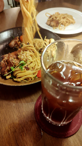 Pulled pork tastes slightly bitter and overcooked. Aglio olio is the fusion version, heavy peppercorn flavour that resembles mala stir fry but somehow overpowered the sauteed minced garlic. Some of the sauteed garlic slices and minced garlic are charred, so it has very little bitter taste to it.